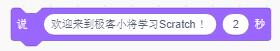 這節課我們讓Scratch小貓學會說話,來學習一下小貓咪的說話指令。這里的說話指的是外觀上的說話,聲音上的說話我們在之后的課程介紹。