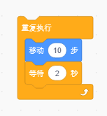 以上案例是可控制次數(shù)的重復(fù)執(zhí)行,為了肉眼能看清角色的運(yùn)動(dòng)次數(shù),我們加入了一個(gè)等待指令,平時(shí)使用時(shí)我們也建議使用可控制次數(shù)的重復(fù)執(zhí)行指令。下面看不可控制次數(shù)的重復(fù)執(zhí)行案例: