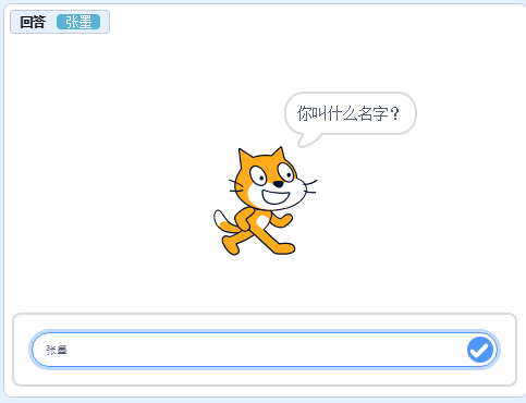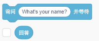 偵測指令當中,詢問回答指令是人機交互的方式之一。重點包括以下兩個指令:其中詢問并等待是:角色發出詢問,并再場景下邊框彈出對話框,等待用戶的輸入回答。回答指令是指:實時的偵測監聽用戶所輸入的回答如下圖所示: