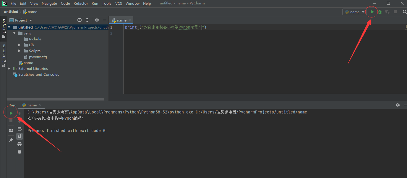print ("歡迎來到極客小將學Pyhon編程!")