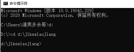 cd切換目錄的使用方法:切換盤符 直接盤符+:切換;同一磁盤內部切換目錄 cd +路徑切換。例如我們將目錄切換到d盤的jikexiaojiang目錄(前提是必須要有這個目錄才可以切換)