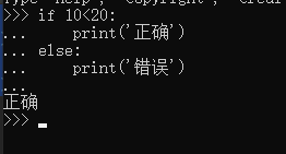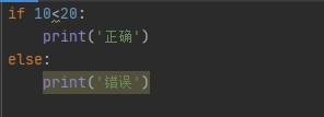 有的時候我們需要根據條件來判斷輸出不同的結果。這個時候就要用到條件控制語句。條件控制語句的基本結構是:if 條件:......表達式......else:......表達式......例如,我們來比較數字10和數字20的大小。如果10<20我們就輸出正確,否則我們就輸出錯誤。如下:我們看到輸出