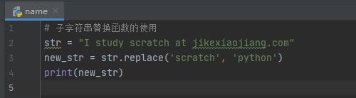 此例中將字符串中的子串scratch替換為python。那么輸出結果為:
