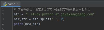 限定拆分兩次,剩余未拆分的字符串最后一次性輸出,那么運行結果為: