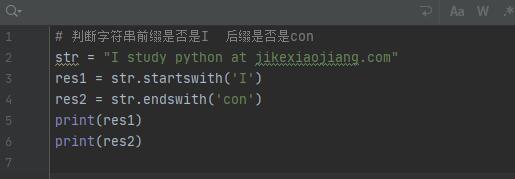 (1)str.startswith(prefix) 判斷字符串是否以prefix子串作為前綴,返回值為布爾類型