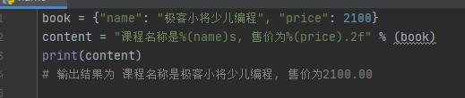 "%(key)s" % (dict):key表示字典中的鍵名,s表示將關(guān)鍵字占位符格式化為字符串類型,同樣可以將s換成其它的格式化類型,例如d,格式化為整型,f,格式化為浮點類型。