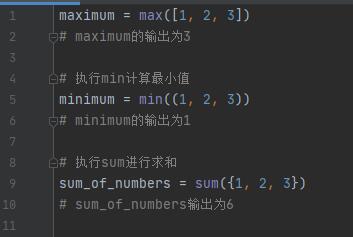 計算最大值,最小值,以及求和。max() min() sum():執行max函數計算最大值,min函數計算最小值,sum函數進行求和。傳遞的參數為可迭代對象: