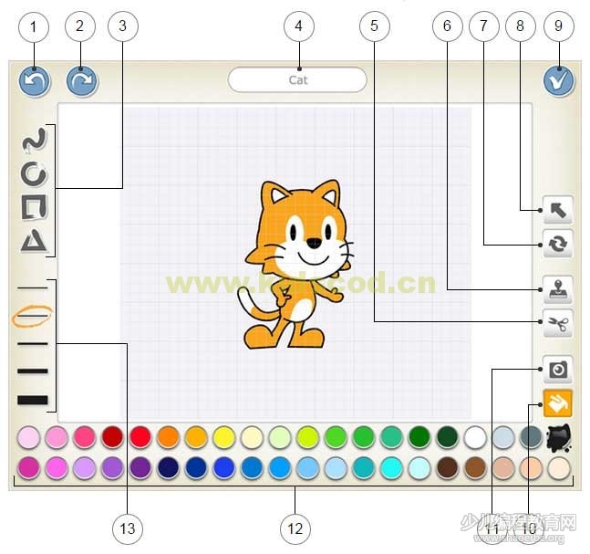 7、重置角色在舞臺上的起始位置。(拖動角色來設置新的起始位置)