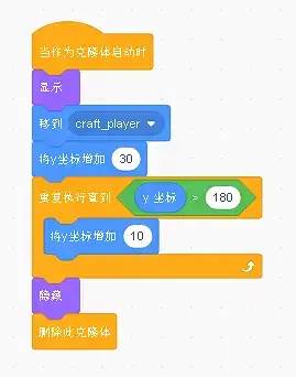 我們此時將craft_player的x坐標設置為0,y坐標設置為-150,并與初始事件積木組合到一起