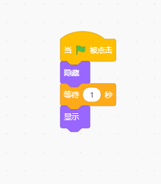 當我們點擊綠旗后,白馬隱藏,一秒后白馬再次出現。