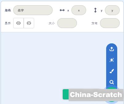 設置造型中心點。這個中心點的設置,是為了讓該角色圍繞這個點進行旋轉。可以看到舞臺的畫布中間有個圓圈中間帶×的標志,我們需要做的就是將造型的中心與該標志重合,或者自己根據不同的效果需求來進行調整位置。