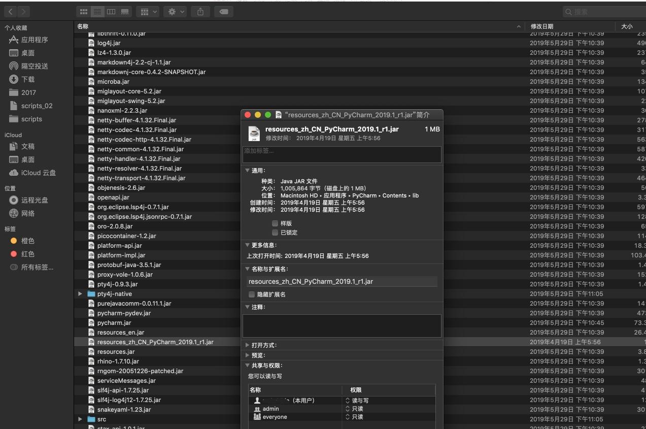 2、拷貝到 /Applications/PyCharm CE.app/Contents/lib/resources_zh_CN_PyCharm_2019.1_r1.jarTtl少兒編程網-Scratch_Python_教程_免費兒童編程學習平臺