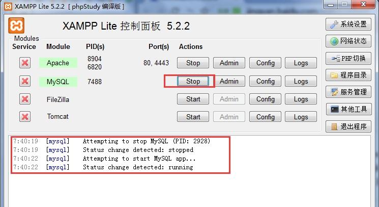 我的是xampp,沒有添加服務,直接先點擊stop,再start就好了。RXO少兒編程網-Scratch_Python_教程_免費兒童編程學習平臺