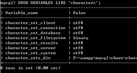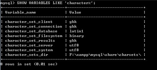 SHOW VARIABLES LIKE 'character%';我們可以看到 character_set_database的值為latin1。大家的值可能不一定一樣,總體來說應該不會是都為utf8。RXO少兒編程網-Scratch_Python_教程_免費兒童編程學習平臺