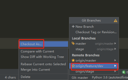 pycharm中怎么切換Git遠(yuǎn)程分支?