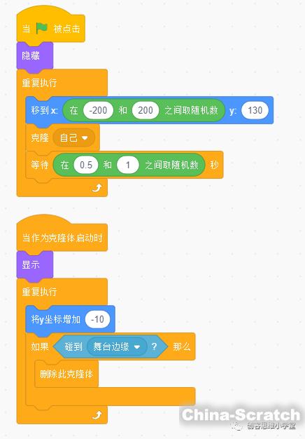 10.最后煙花顆粒碰到舞臺邊緣,刪除克隆體。