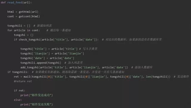 二是,若檢測(cè)到目標(biāo)網(wǎng)站有新的通知,則將新通知數(shù)據(jù)插入到數(shù)據(jù)庫中,然后,發(fā)送提示電子郵件。tvE少兒編程網(wǎng)-Scratch_Python_教程_免費(fèi)兒童編程學(xué)習(xí)平臺(tái)