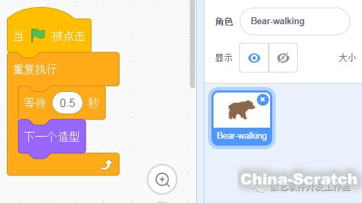 21、上圖腳本中用了兩個“綠旗”,測試時,需要點擊下圖所示“綠旗”。