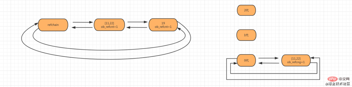 第二步:當創建對象num_list = [11,22]時,會將列表對象添加到 refchain 和 generations 0代中。 PFa少兒編程網-Scratch_Python_教程_免費兒童編程學習平臺