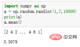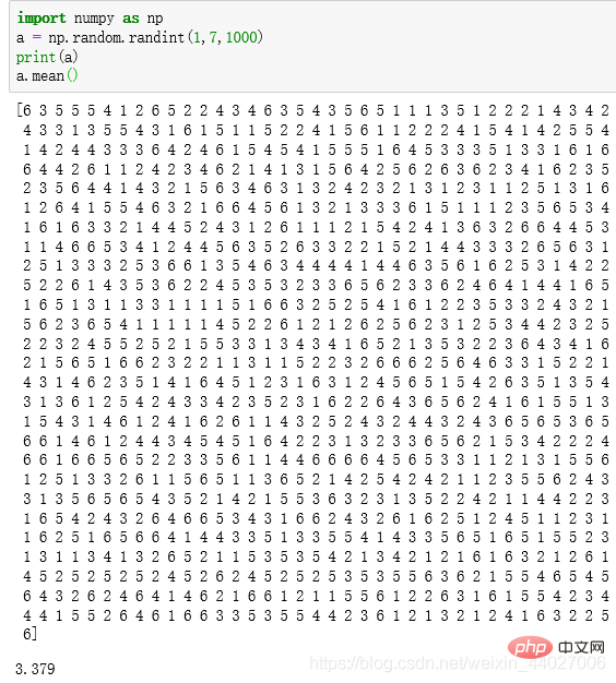 首先模擬隨機擲色子1000次觀察一下平均值。import numpy as np a = np.random.randint(1,7,1000)print(a)a.mean()輸出結果: