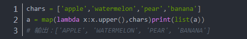 5、map()做文本處理的時候,假如要對序列里的每個單詞進行大寫轉化操作。這個時候就可以使用map()函數。gdO少兒編程網-Scratch_Python_教程_免費兒童編程學習平臺