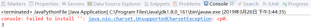 package com.test; import org.python.util.PythonInterpreter; public class JavaPythonFile { public static void main(String[] args) { PythonInterpreter interpreter = new PythonInterpreter(); interpreter.execfile("D:\javaPythonFile.py"); } }輸出結果如下:r35少兒編程網-Scratch_Python_教程_免費兒童編程學習平臺