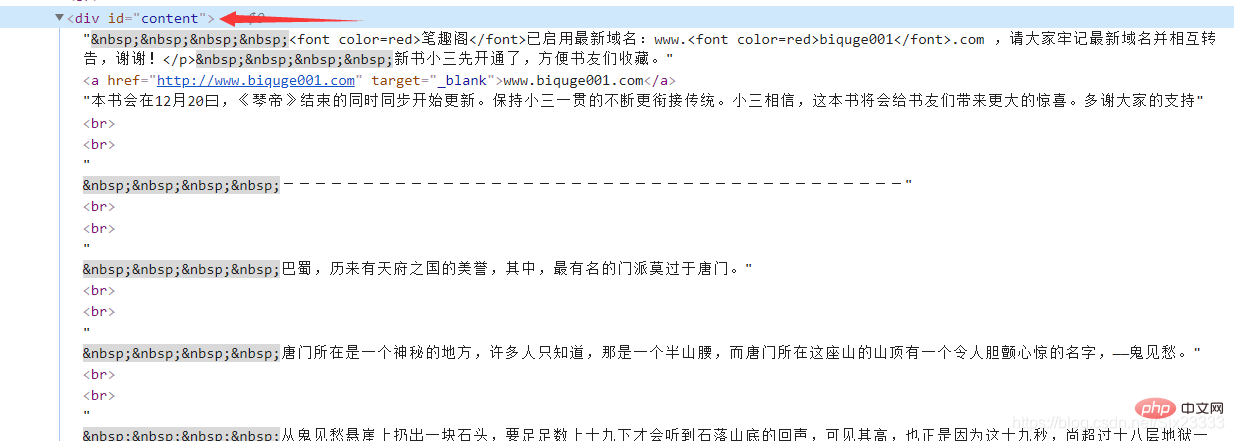 for url in urls: href = "http://www.biquge001.com/" + url['href'] # 字符串的拼接 拼接成正確的網(wǎng)址 pageName = url.text # 每章的章名然后每章小說的內(nèi)容都存放在<p id=“content” 里 同理得