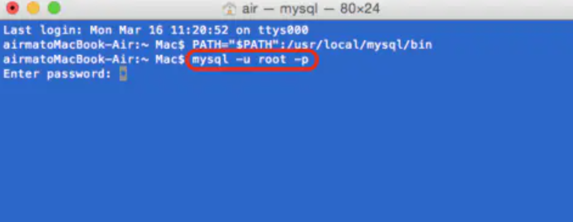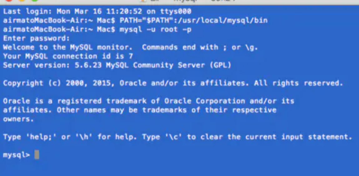 3、在終端登錄到MySQL的命令如下: mysql -u root -pl3B少兒編程網(wǎng)-Scratch_Python_教程_免費兒童編程學(xué)習(xí)平臺