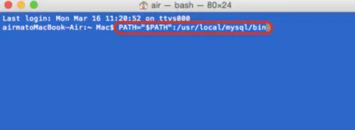 2、在終端中輸入添加MySQL路徑的命令: PATH="$PATH":/usr/local/mysql/binl3B少兒編程網(wǎng)-Scratch_Python_教程_免費兒童編程學(xué)習(xí)平臺