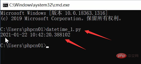 import datetime x = datetime.datetime.now() print(x)然后打開cmd窗口,輸入“python py文件名稱”,我的文件名是datetime_1,如下圖所示:8OC少兒編程網-Scratch_Python_教程_免費兒童編程學習平臺