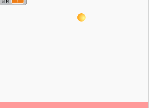 ?????接下來看一下隨機出現是怎么實現的,我們需要用到“移到”這個積木,怎么隨機呢,這里我們只需要把橫坐標隨機移動,縱坐標只要固定在一個地方不動就好了。