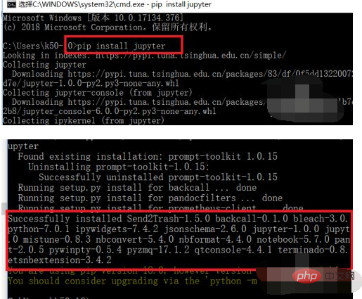 pip install jupyterpip會自動下載jupyter對應的依賴,然后安裝完成。如下面第二張圖中所示,比linux版本上安裝的包好像要多一些。Jyh少兒編程網-https://www.pxcodes.com