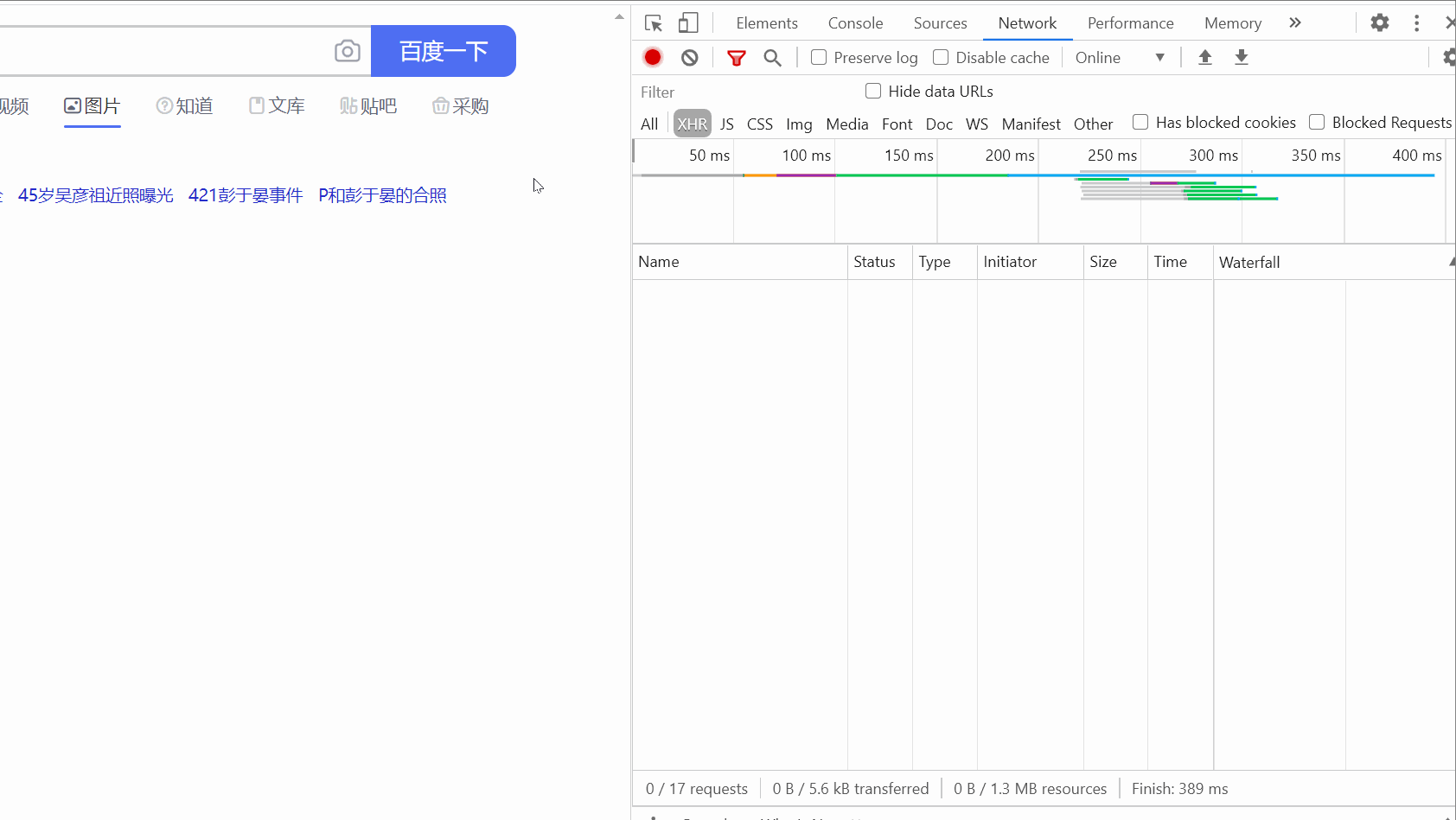 然后,打開抓包工具,選擇XHR選項,按Ctrl+R,然后你會發現,隨著你鼠標的滑動,右側會出現一個又一個的數據包。