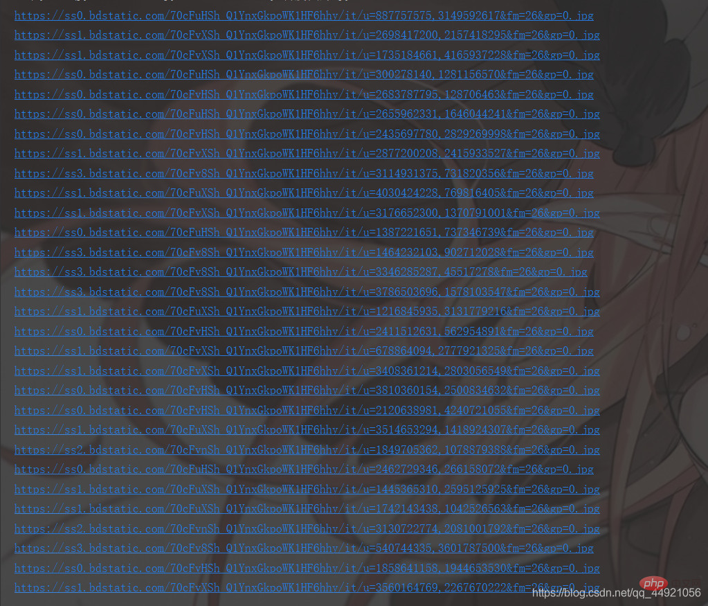 a = data_s["data"] for i in range(len(a)-1): # -1是為了去掉上面那個空數據 data = a[i].get("thumbURL", "not exist") print(data)結果如下: