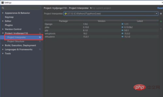 4、展開project選項,選擇其下面的Project Interpreter選項,如下圖所示1eF少兒編程網-https://www.pxcodes.com