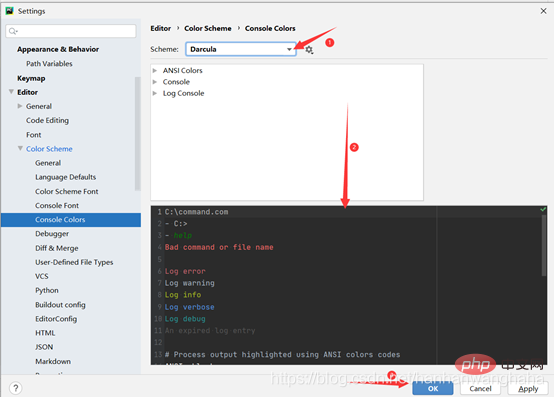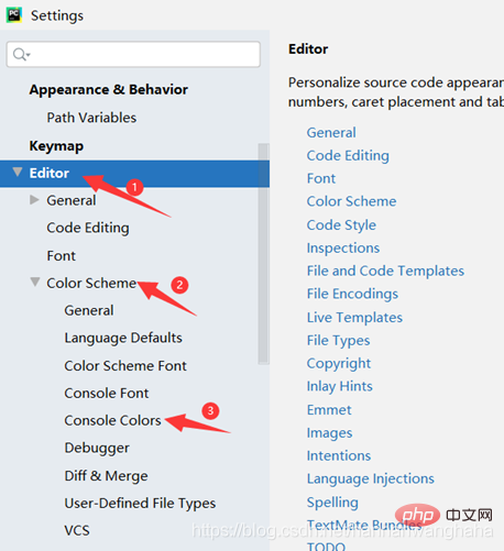 點(diǎn)擊Editor(編輯器),點(diǎn)擊Color Scheme(色彩方案),再點(diǎn)擊Console Colors(控制臺(tái)顏色)rn7少兒編程網(wǎng)-https://www.pxcodes.com