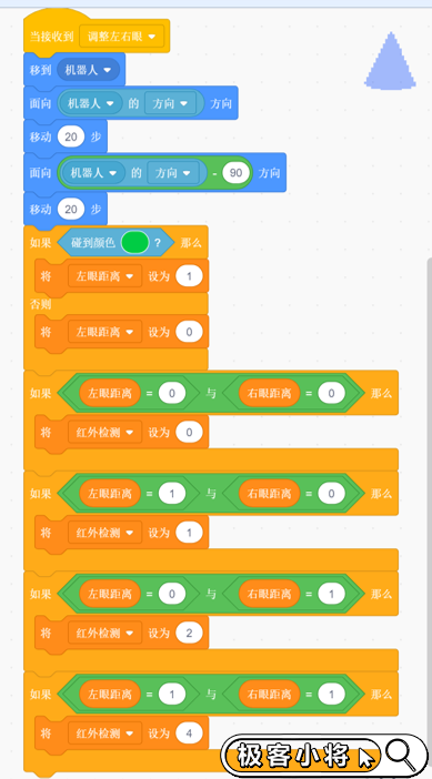 ②左右探測儀跟隨機器人移動