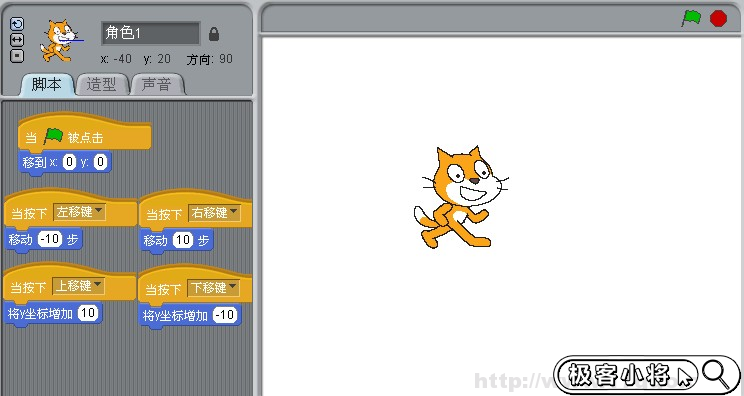 知道坐標后才能控制角色在舞臺上的位置和移動。
