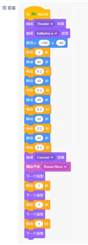 (3)角色Ballerina能夠移動(dòng)到舞臺(tái)中間;(4分)