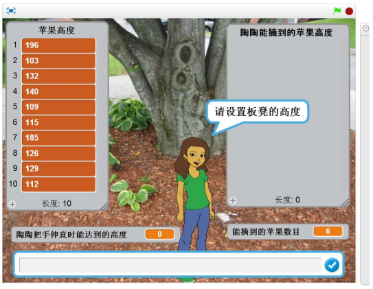 現(xiàn)在已知 10 個蘋果到地面的高度,以及陶陶把手伸直的時候能夠達到的最大高 度,請幫陶陶算一下她能夠摘到的蘋果的數(shù)目。假設她碰到蘋果,蘋果就會掉下來。