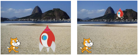 3、當(dāng)火箭到達舞臺上邊緣時隱藏。